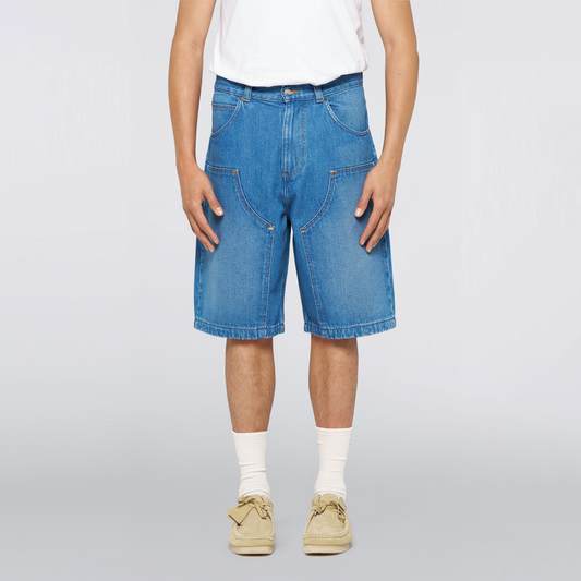 Double Knee Worker Short Blue (Mid Stone Faded)