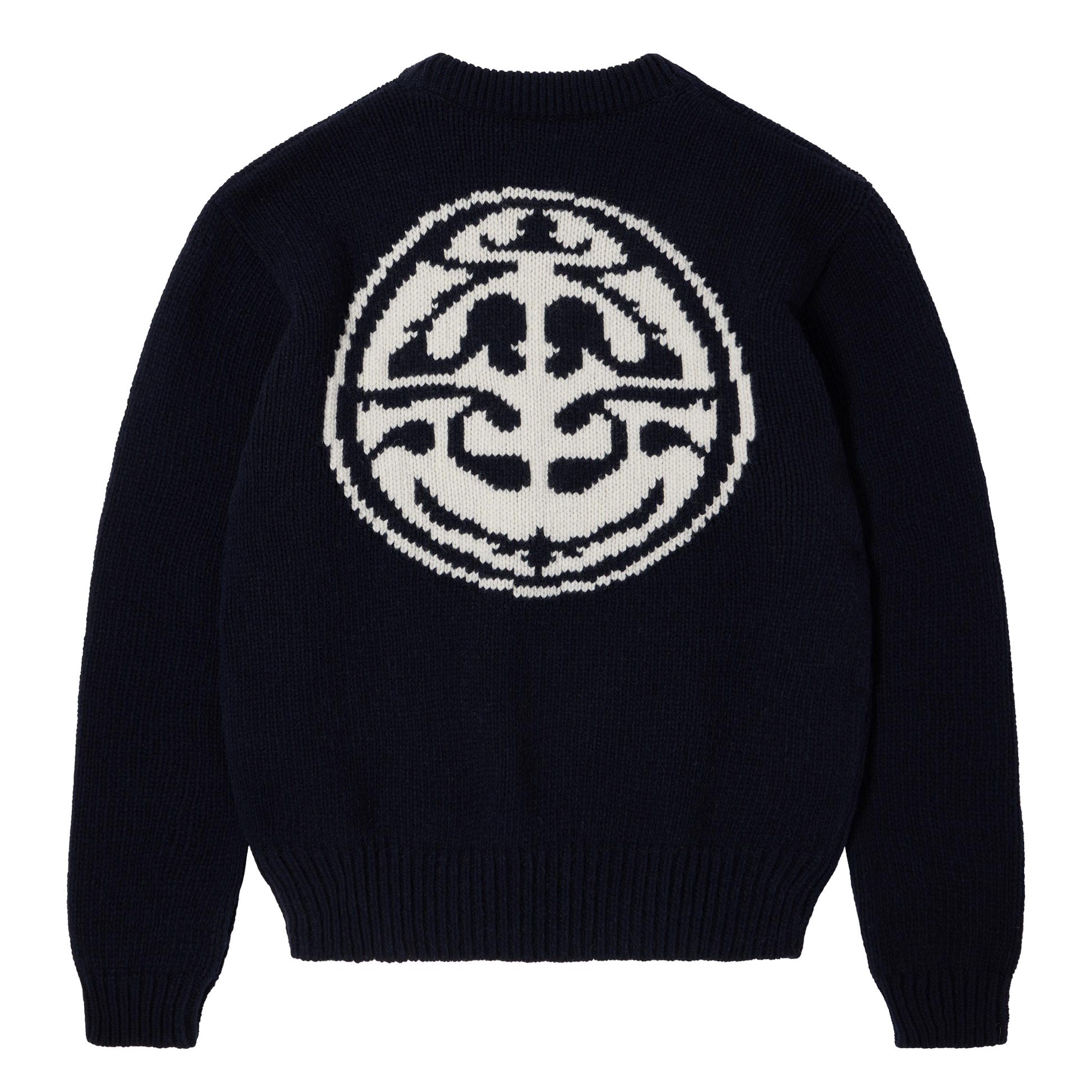 The EDWIN Ellis Sweater is a boxy fit knit with bold seasonal detailing. Made from a heavy 80% Fine Wool and 20% Polyamid blend, it features a warm construction ideal for winter and a standout beetle jacquard on the back. Finished in a Black / Baltic colorway, this sweater blends graphic design with functional craftsmanship.