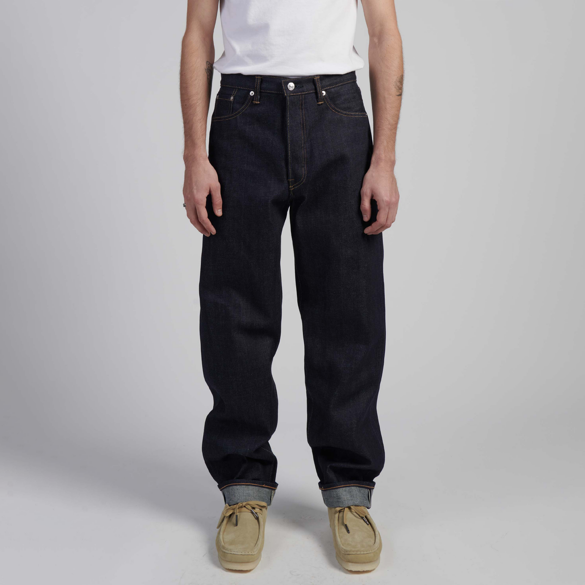 The 'Made in Japan' Collection offers a unique product with no direct competition in terms of quality, price point and a ‘Made in Japan’ provenance. Accommodating the more traditional aspects of the premium Japanese denim collection, the EDWIN Loose Jeans is made from a 14oz Kurabo Recycle Denim Red Selvage.