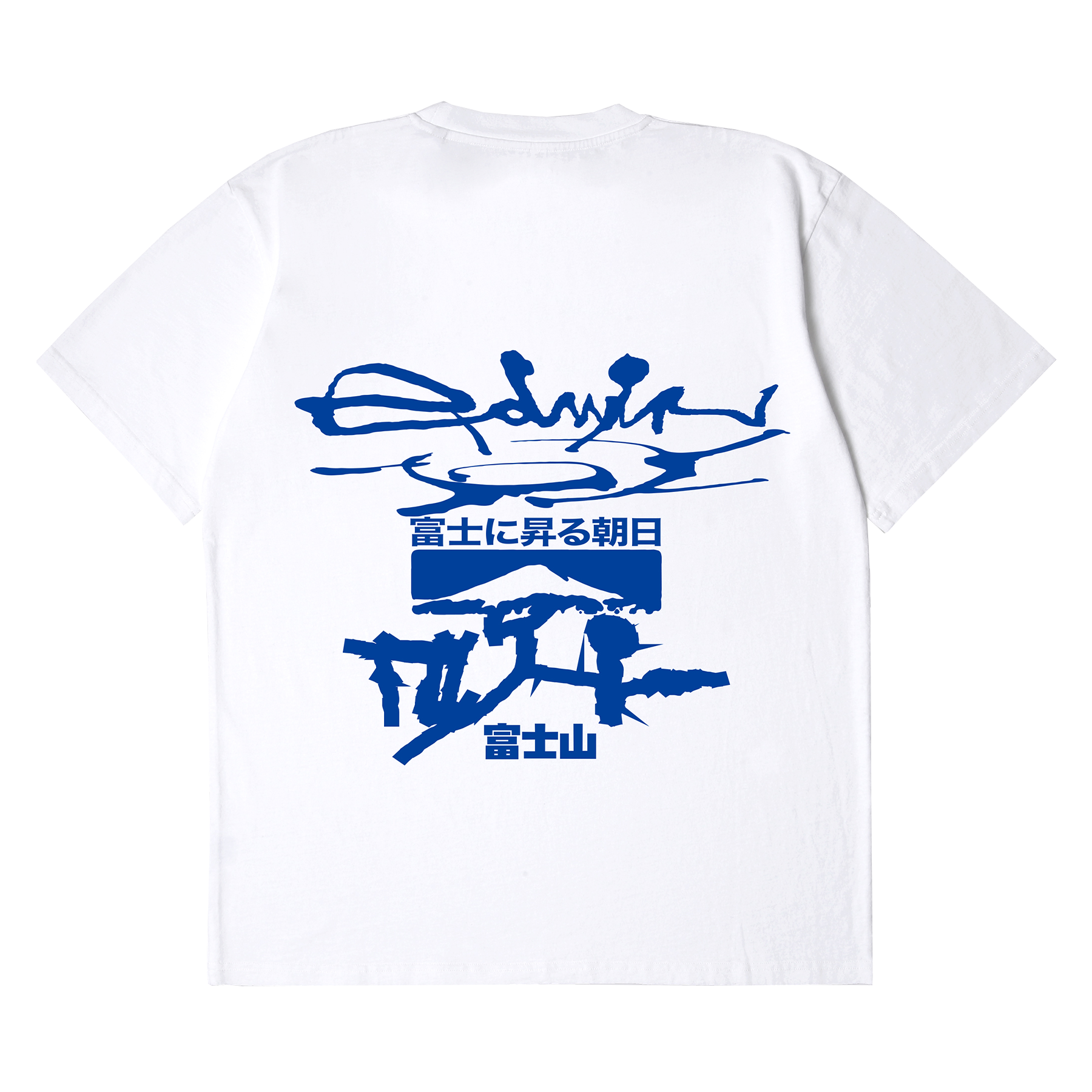 The EDWIN Mount Fuji Dusk T-Shirt is made from 160g/m² single jersey, 100% cotton. It features an oversized fit, graphic prints on both chest and back, and a ribbed collar for added durability and structure.