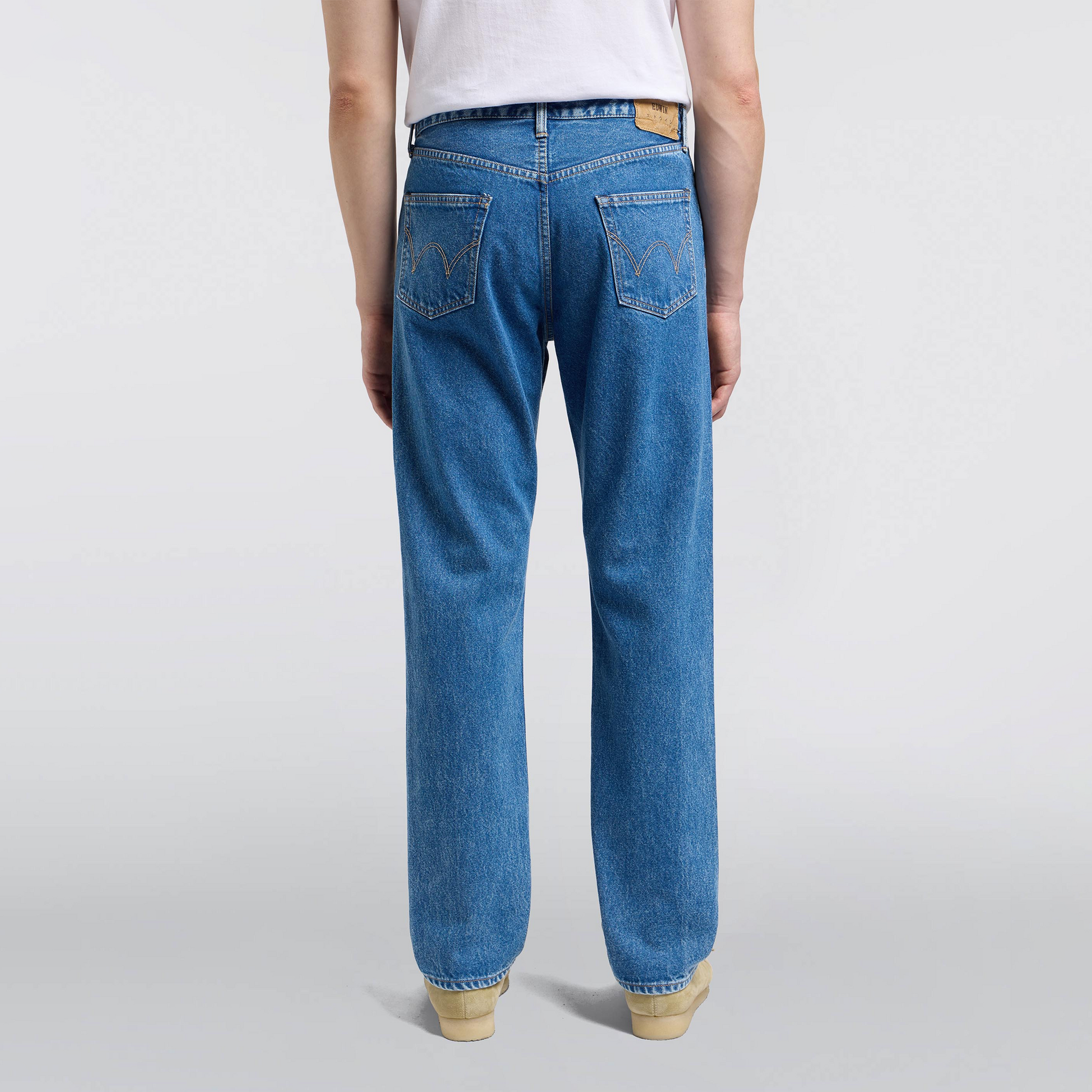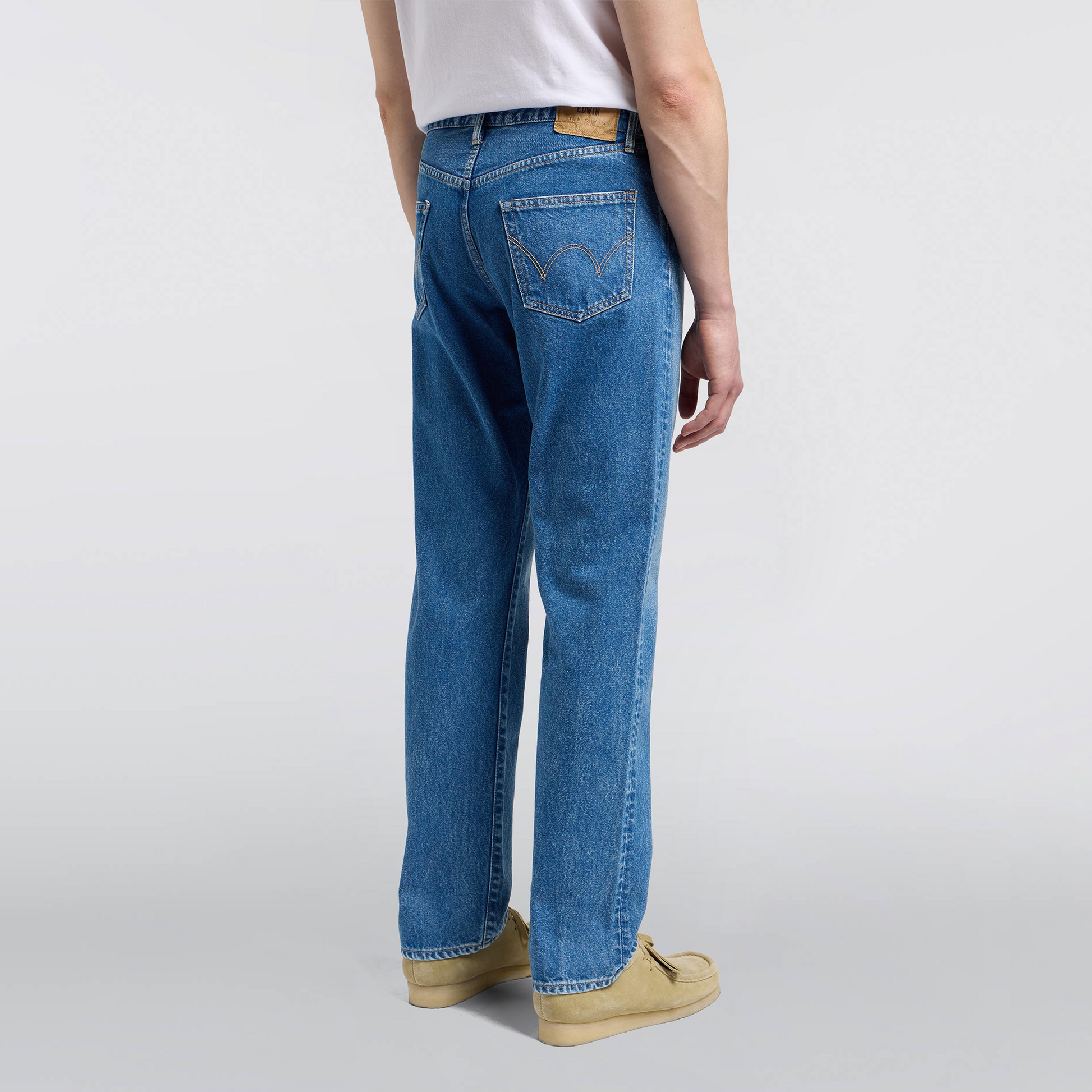 The Regular Straight Jeans are produced in Japan from a 12.5oz Kaihara Pure Indigo Opened Denim Fabric, made of 100% cotton. Featuring a regular straight fit, high rise, and a classic five-pocket design with a zip fly, they offer a timeless and comfortable silhouette. The Blue Mid Light Used wash gives the denim a softly faded, gently worn look. Finished with a 100% pulp paper patch on the back, this piece exemplifies the craftsmanship and attention to detail characteristic of EDWIN's 'Made in Japan' collection.