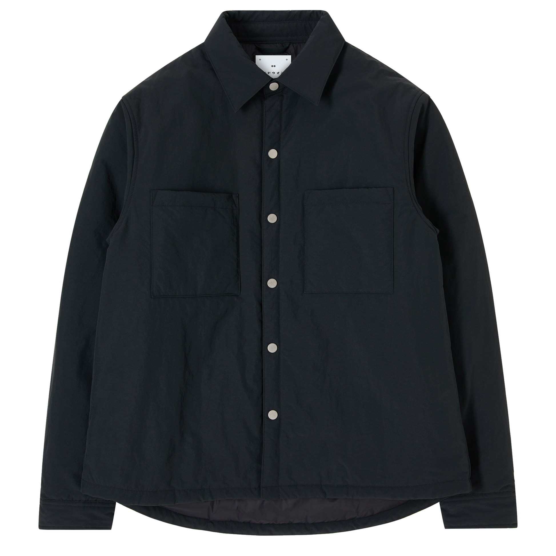 The EDWIN Sphere Padded Overshirt LS is a regular fit overshirt designed for functional layering. Made from 120g/m² paper touch fabric (100% nylon), it is fully lined and padded for added warmth. Featuring metal snaps at the front and cuffs, two front patched pockets, and two side pockets, this overshirt blends utilitarian design with clean, technical aesthetics.