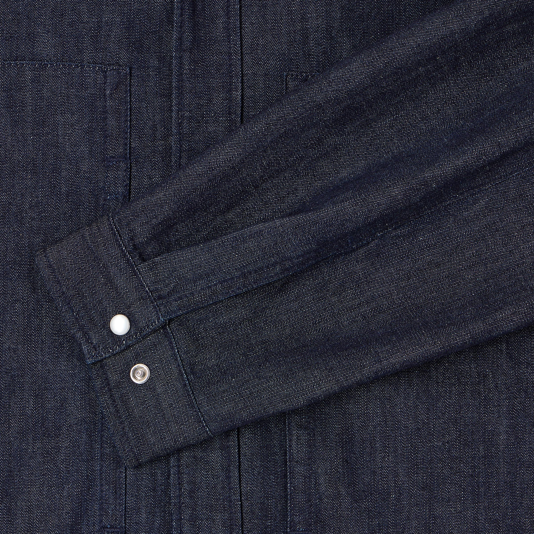 The EDWIN Workman Shirt LS is a cropped fit shirt with classic workwear details. Made from 7oz cave blue denim (100% cotton), it features pleats at the shoulders and two long chest pockets for practicality. Finished with mother of pearl snap buttons and the Edwin woven tab at the chest pocket, this shirt blends authentic style with durable craftsmanship.