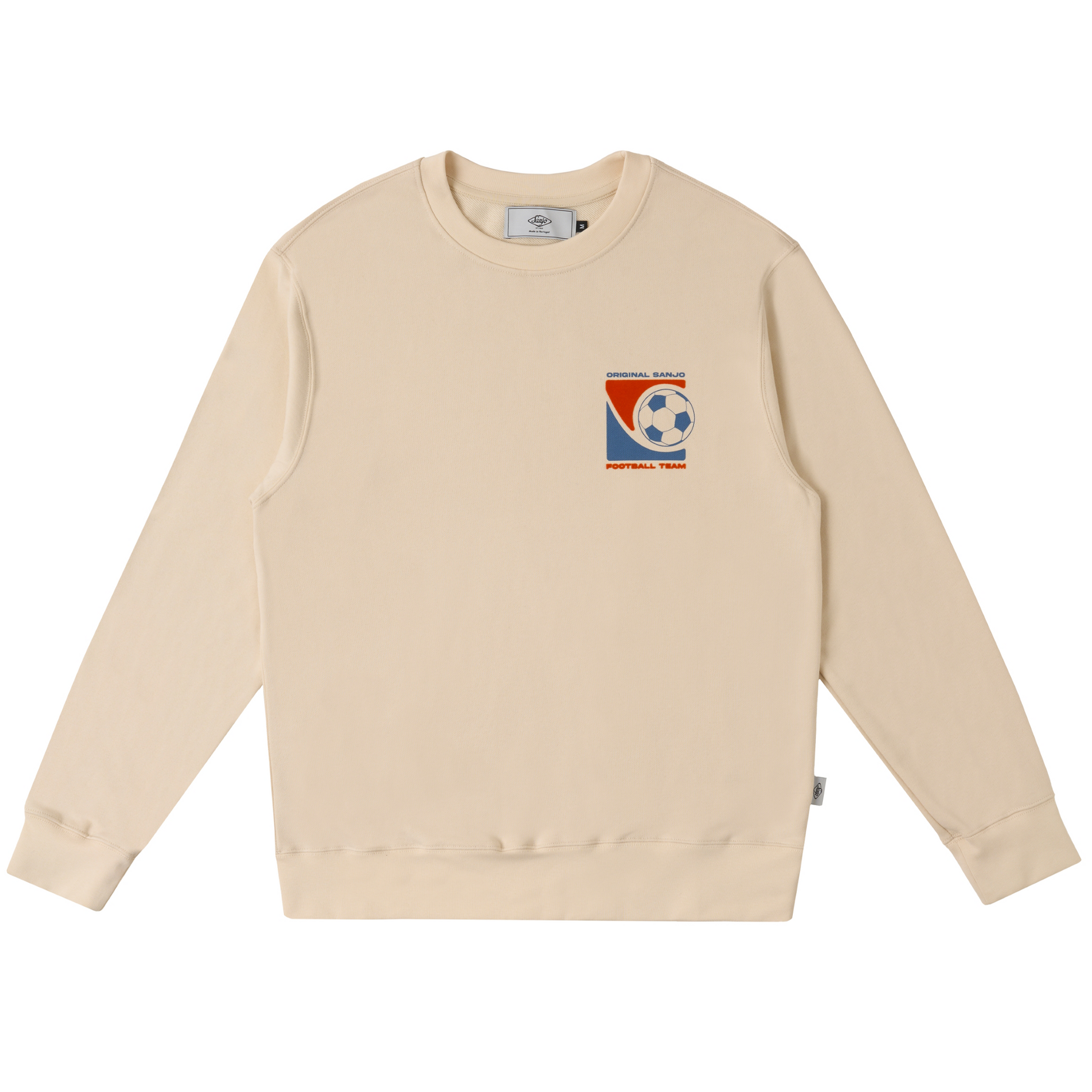 Inspired by Portuguese sporting heritage, this oversized fit Sanjo Football sweatshirt features a bold football-inspired graphic on the back and a smaller version on the chest, combining printed and flocked finishes for a textured look.